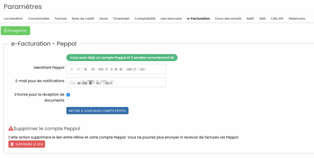 Rendez-vous ensuite, dans l’onglet e-Facturation et cliquez sur le bouton « Créer mon compte Peppol »